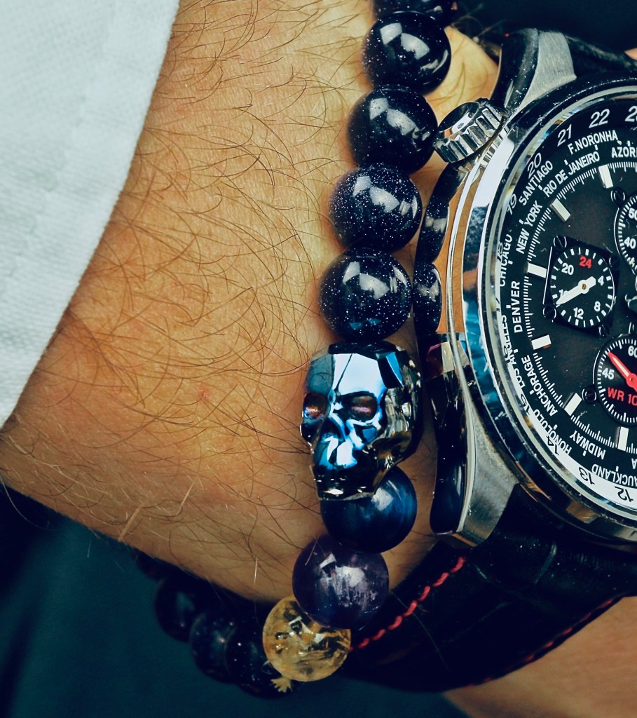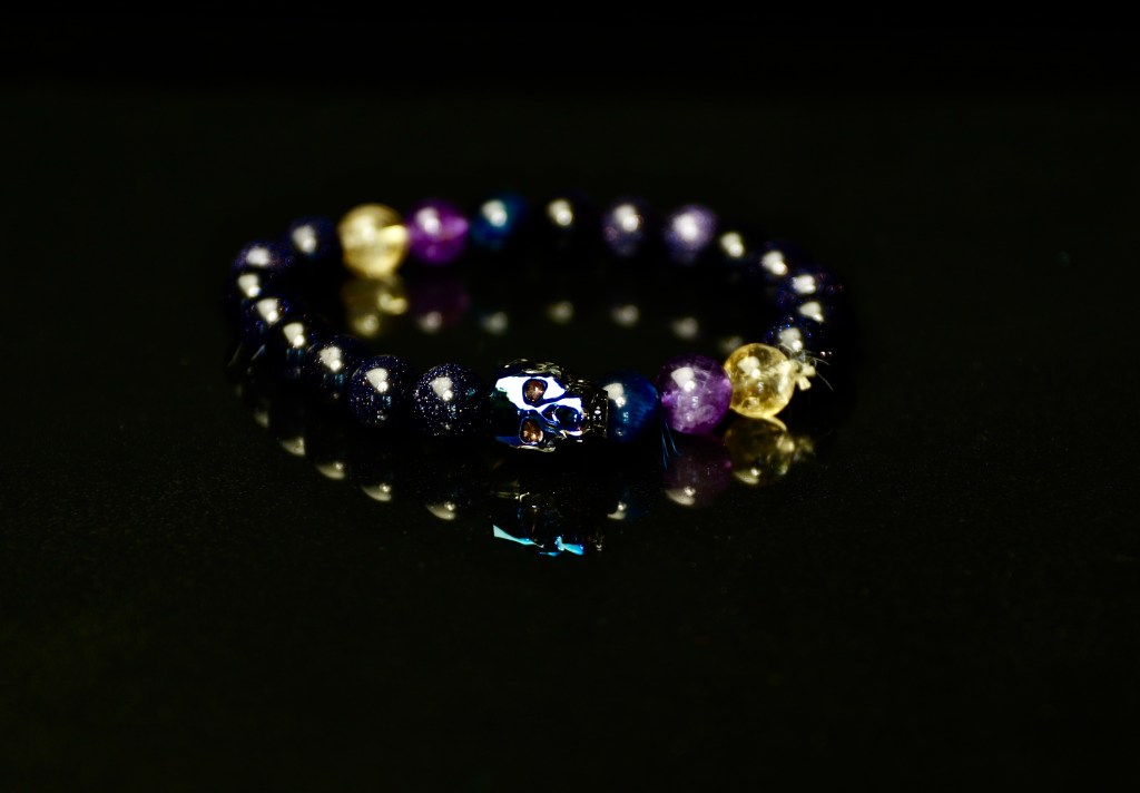 I was trying to think what to put with the bracelet and because it had a skull I don’t know why I thought Fire but I had the idea to put fire behind it and let the reflections of the red and yellow show through, I put one light on the front on the skull which didn’t turn out too bad, keeping in mind I was in a small room with a large black cloth directly behind the flame, in my head I’m thinking after the morning I have just had I’m very skeptical how this is going to go.