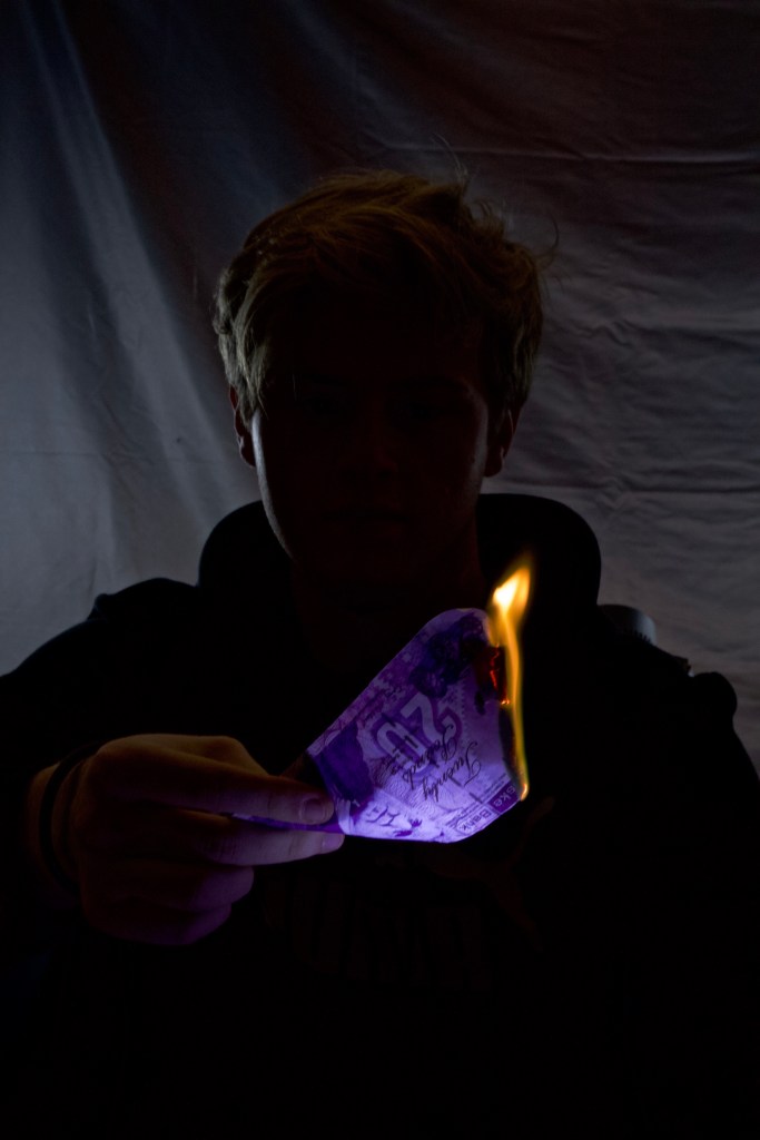 So we had the idea to do something that people would notice which was to burn money, we used £20 notes because we didn’t want to look like total idiots.